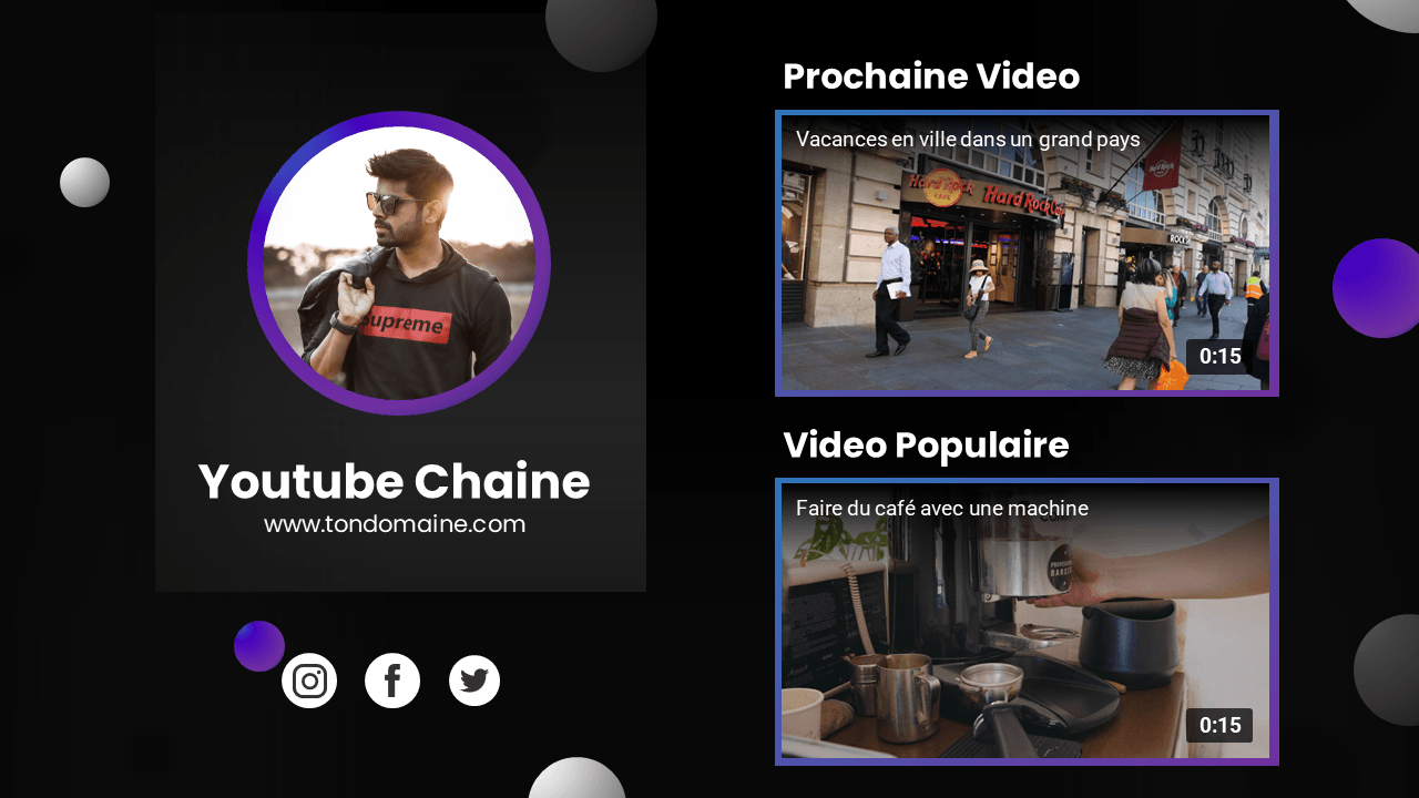 VidTube est un mega pack de templates conçu entièrement avec Powerpoint. Vous y trouverez à l'interieur du visuel, des animations , des vidéos, music et effet sonore libre de droit. Avec VidTube vous pouvez en quelques clics créer du visuel et du contenu vidéo Youtube de qualité.